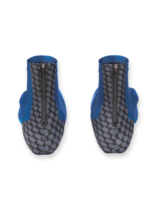 Dispongono di due aperture sul lato della suola. L’apertura anteriore rende possibile indossare i copriscarpa anche nel caso di utilizzo di pedali con sistema a click. La cerniera sul tallone ne facilita la calzatura.