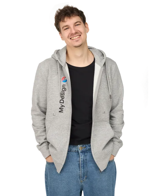 Felpa unisex con cappuccio e zip con interno soffice e pratica tasca a canguro.